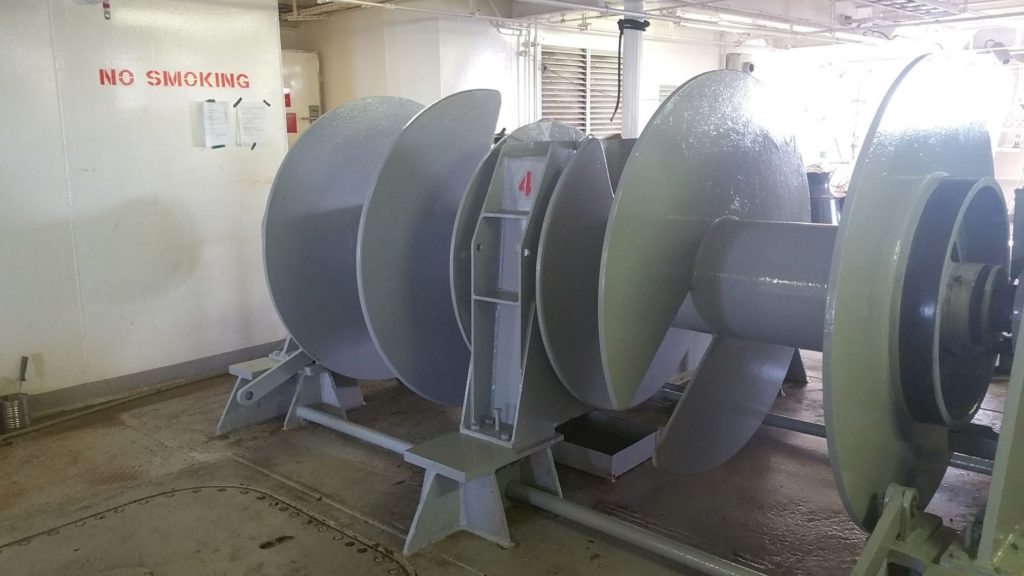 This Mooring Winch was required to be removed from foundation and rotated to facilitate the removal of all rotating components. The Mooring Spool Bushings along with all the seals were replaced with new. This service can be accomplished in service or during Dry Dock Availability.